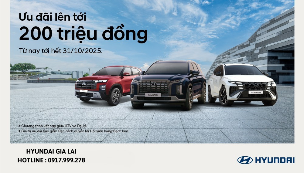 Cụ thể, trong tháng 10, khách hàng khi chọn mua bất cứ phiên bản nào của các dòng xe Hyundai Palisade, Hyundai Santa Fe, Hyundai Tucson, Hyundai Creta, Hyundai Accent, Hyundai Stargazer và Hyundai Grand i10 đều có cơ hội nhận được ưu đãi từ 23 triệu đến 200 triệu đồng, trong đó bao gồm quyền lợi Hội viên khách hàng Hyundai hạng Bạch Kim trị giá 10 triệu đồng.